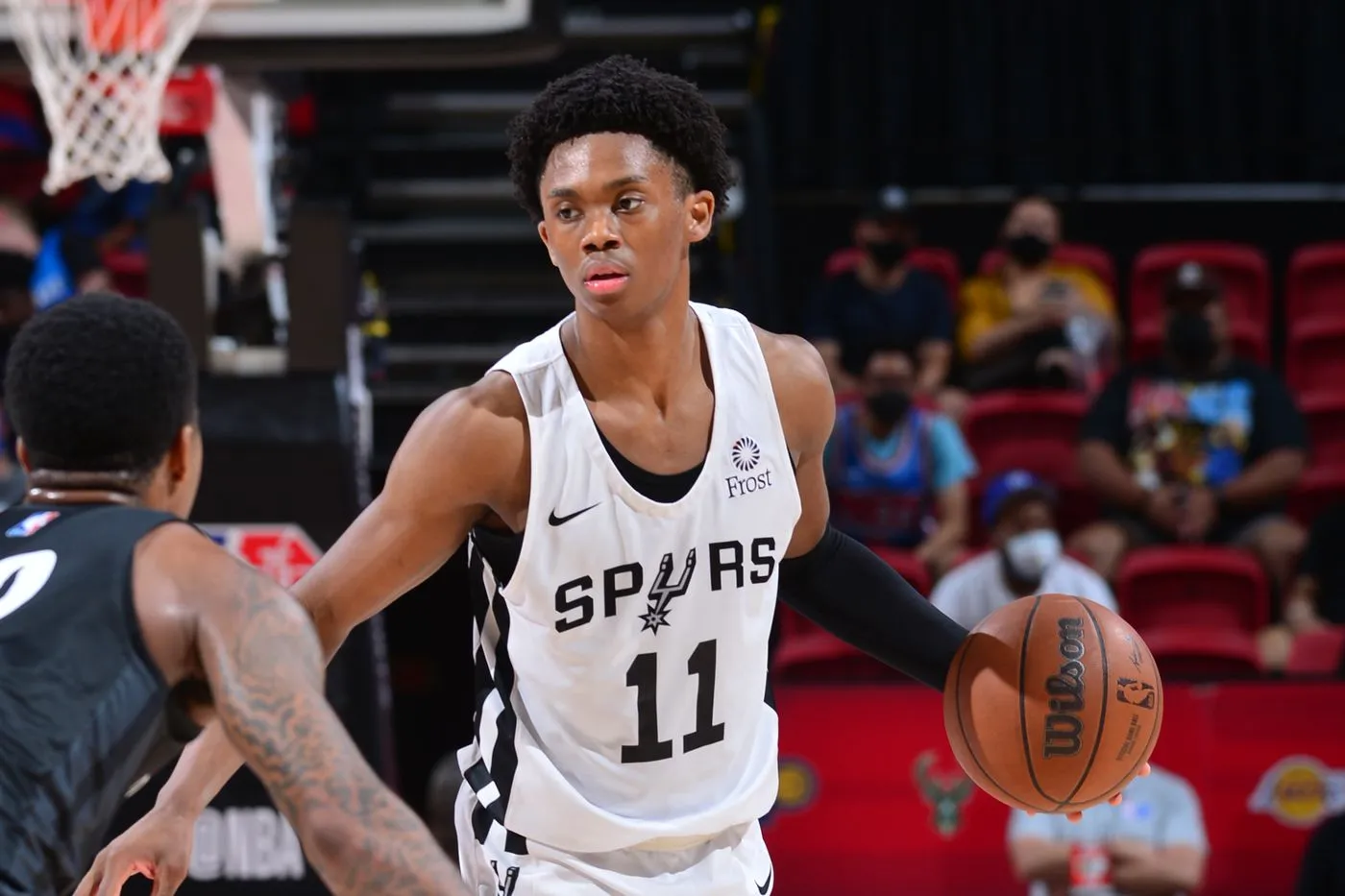 Plus jeune joueur de la NBA en lice pour la saison 2021/22, Joshua Primo continue de franchir les étapes avec une étonnante décontraction. Choisi en 12e position par les Spurs après avoir montré un potentiel intéressant lors du Draft Combine de Chicago, l'arrière de 18 ans a rapidement confirmé lors de la Summer League, à Utah et à Las Vegas, avec une moyenne de 14.3 points, 2.7 rebonds, 2.5 passes décisives en 25 minutes sur quatre matchs.