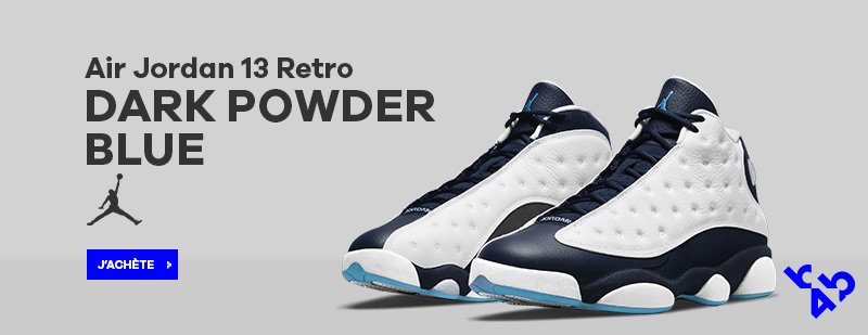 Commandez maintenant sur Basket4Ballers.com la Air Jordan 13 Dark Powder Blue qui avec sa tige en cuir froissé avec des perforations alvéolées, un amorti Zoom Air et un hologramme au talon, reprend tous les détails OG de la paire. Livraison et retour offerts.
