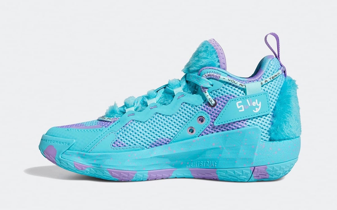 Après la D.O.N. Issue 3 en mode « Bob Razowski », c’est la Dame 7 EXTPLY qui va se doter d’un modèle pour le moins original à l’occasion d’une collaboration inédite entre adidas et Pixar pour les vingt ans du film d’animation « Monstres et Cie ».