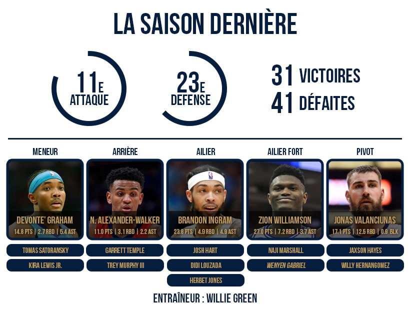 De plus, défensivement, les Pelicans étaient aussi trop souvent en difficulté. Sans oublier les erreurs, voire la naïveté, dans certaines fins de match, qui ont fait mal quand les victoires étaient importantes pour aller disputer le “play-in”. Bref, il y avait du potentiel dans cette équipe, mais aussi beaucoup de problèmes insurmontables sur 82 matches. L’intersaison a tenté de corriger cela pour permettre à Willie Green d’avoir plus d’options entre les mains.
