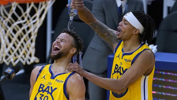 Forcément questionné sur Ben Simmons, Stephen Curry n’a pas voulu tomber dans le piège de Joe Lacob, sanctionné pour “tampering” : “Disons que si nous n’avons pas ces discussions, alors on n’essaie pas.”