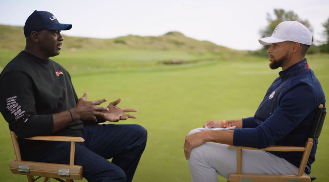 La Ryder Cup est l’événement sportif de la semaine, et Stephen Curry est sur place pour commenter l’opposition entre les Etats-Unis et l’Europe sur NBC. L’occasion pour lui de croiser un habitué des greens avec Michael Jordan. Les deux partagent cette même passion pour la petite balle blanche, et Curry explique qu’il a bien du mal aujourd’hui à freiner cette passion qu’il apprécie presque autant que le basket.