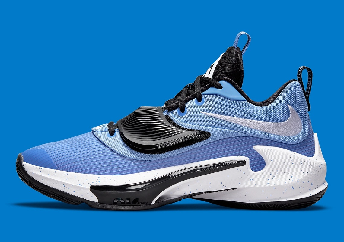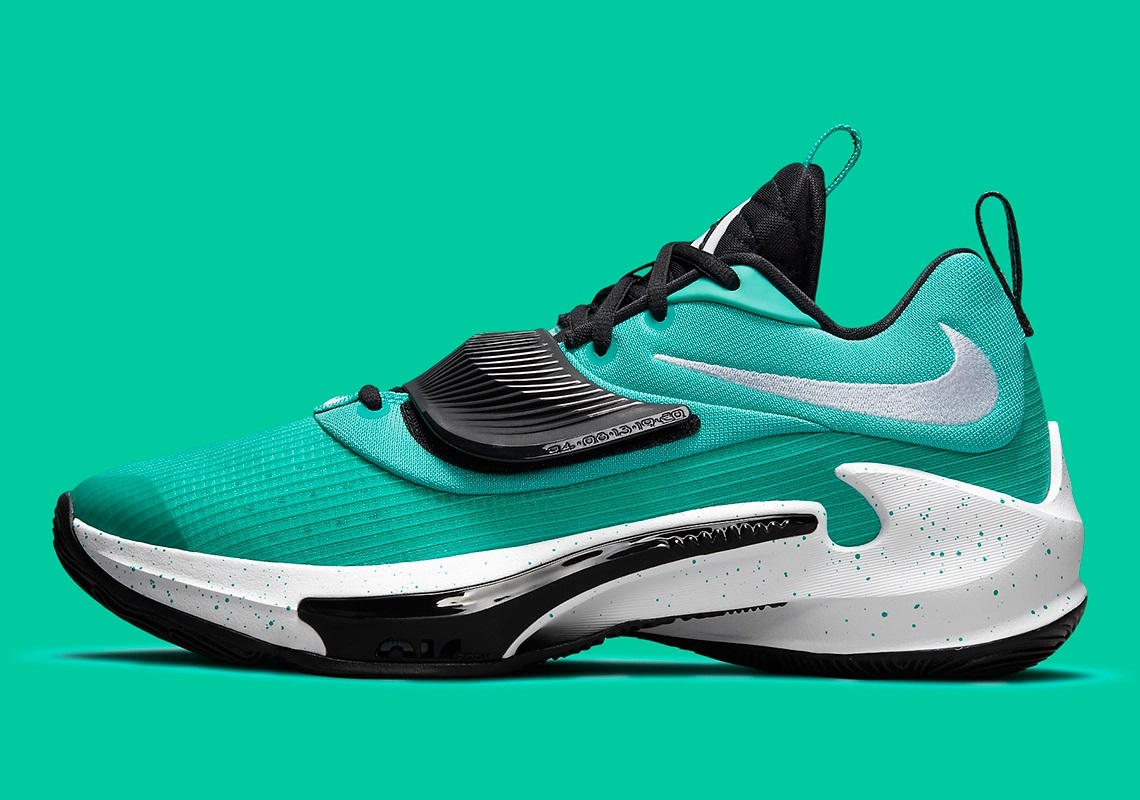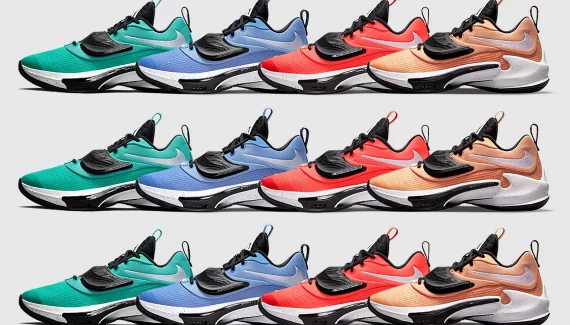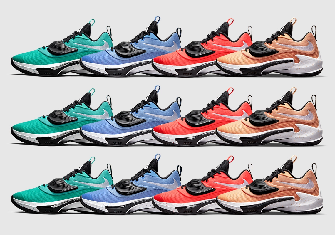 Dernière chaussure signature en date de Giannis Antetokounmpo, la « Zoom Freak 3 » va s’offrir une seconde jeunesse pour le début de la saison avec l’arrivée prochaine de quatre coloris, correspondant aux principaux uniformes notamment portés lors de tournois : bleu, vert, rouge et jaune.
