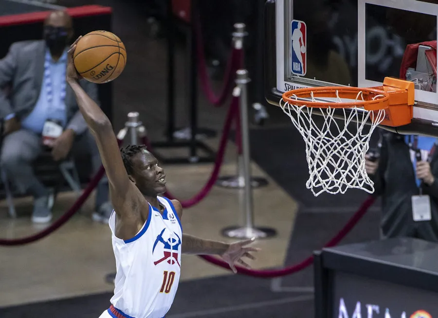 En manque de dissuasion dans la peinture après le départ de JaVale McGee et avec un Jokic qui n'est pas reconnu pour ses qualités athlétiques, les Nuggets comptent sur Bol Bol pour utiliser son envergure de 2m38 à bon escient. Et ce n'est là qu'une des cordes à l'arc de Bol.