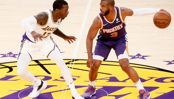 Toujours pas de succès en présaison pour les Lakers dominés de bout en bout par les Suns. C’est Landry Shamet, suppléant de Devin Booker, qui est le premier en action, bien servi par Chris Paul. Même Deandre Ayton plante de loin, et les Suns se détachent (16-8).