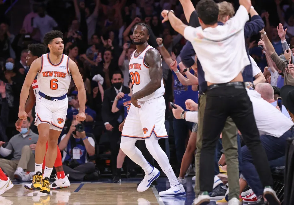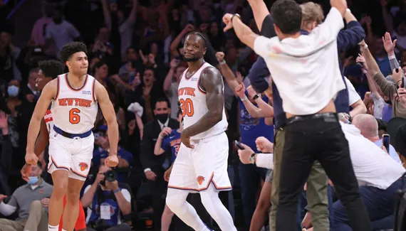 La balle de match est pour Julius Randle avec un simple système en isolation. Le petit pas de côté pour se donner un mètre sur son défenseur, et il fait mouche à l'ultime seconde (115-113). On est qu'en présaison, mais des spectateurs lui sautent dessus. C'est la magie new-yorkaise.