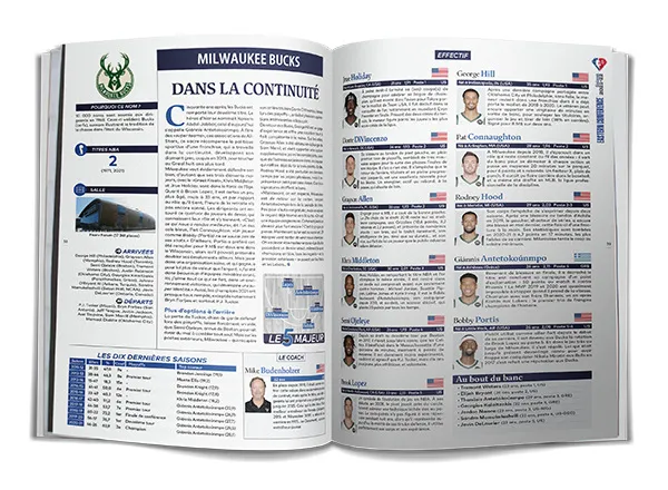 Au sommaire, 84 pages 100% NBA, avec la présentation des 30 franchises. Pour chaque équipe, vous retrouverez une analyse globale de l’intersaison, les arrivées et départs, l’historique, mais aussi un commentaire et une fiche pour chaque joueur et chaque coach. Au total, ce sont donc plus de 350 joueurs et entraîneurs présentés en détail ! Le tout avec le talent de la graphiste Ptitecao pour la couverture.