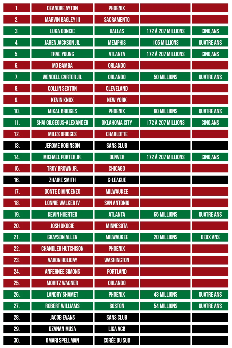 Cette Draft 2018 a néanmoins marqué l'histoire récente de la Ligue avec plus d'un milliard de dollars investis sur ces prolongations de contrat, avec la dernière très grosse pour Jaren Jackson Jr. (105 millions sur quatre ans).