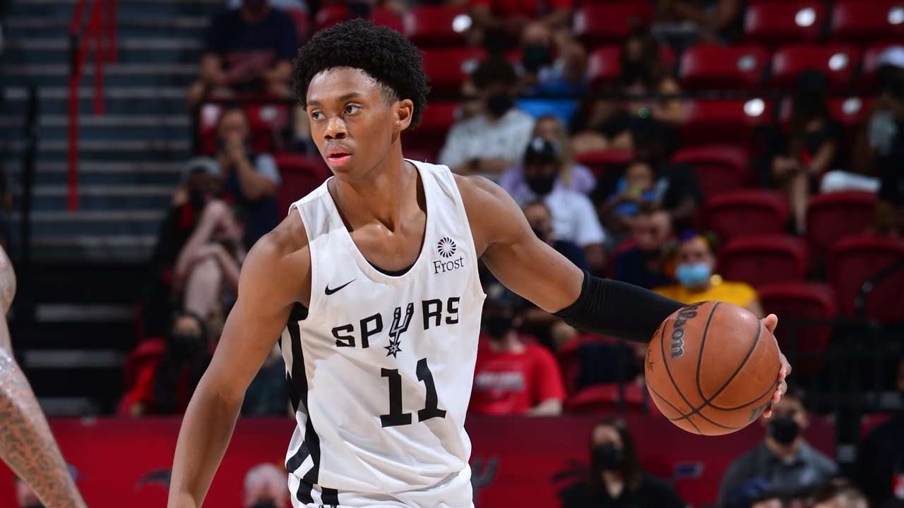 Mais on doit désormais employer l’imparfait puisque depuis mercredi, un rookie sorti de l’université a fait mieux que Devin Booker, et il s’agit de Josh Primo, le meneur des Spurs. Seul joueur âgé de 18 ans dans les effectifs de cette saison, il a eu le droit à quelques minutes dans le “garbage time” de la rencontre face au Thunder, et à 18 ans et 300 jours, il est ainsi devenu le plus jeune joueur sorti de l’université à fouler un parquet NBA.