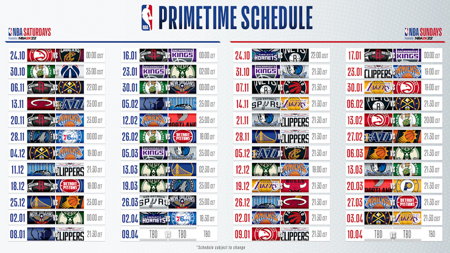 Grâce à ces NBA Saturdays et NBA Sundays, il sera possible de voir 29 des 30 franchises NBA, et si le samedi, les rencontres sont plutôt à 23h00, voire minuit, le dimanche, c’est un horaire très accessible avec le plus souvent un match à 21h30.