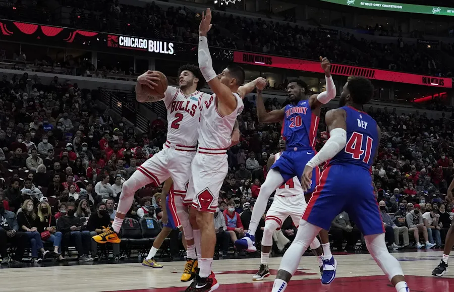 Résultat : ces Bulls “new look” sont effectivement très intéressants en défense. Le meilleur exemple, c'est cette séquence de plusieurs stops défensifs dans le deuxième quart-temps face aux Pistons, ponctuée d'un contre monstrueux de Lonzo Ball sur Isaiah Stewart. C'est le plus marquant, mais c'est toute la séquence qui est intéressante avec de l'agressivité et de la mobilité, et des Pistons finalement impuissants.
