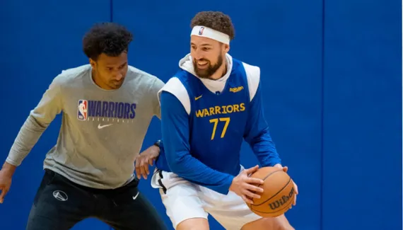 Car à l'entraînement de samedi, l'arrière des Warriors a trouvé un maillot floqué du numéro #77 dans son casier !