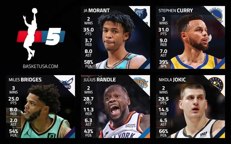 /https%3A%2F%2Fwww.basketusa.com%2Fapp%2Fuploads%2F2021%2F10%2Fja-morant-1.jpg) La saison 2021/22 n'a démarré que mardi dernier mais toutes les équipes ont déjà joué au moins deux matchs et on peut donc reprendre nos habitudes en désignant le “cinq majeur” de la première semaine de compétition.