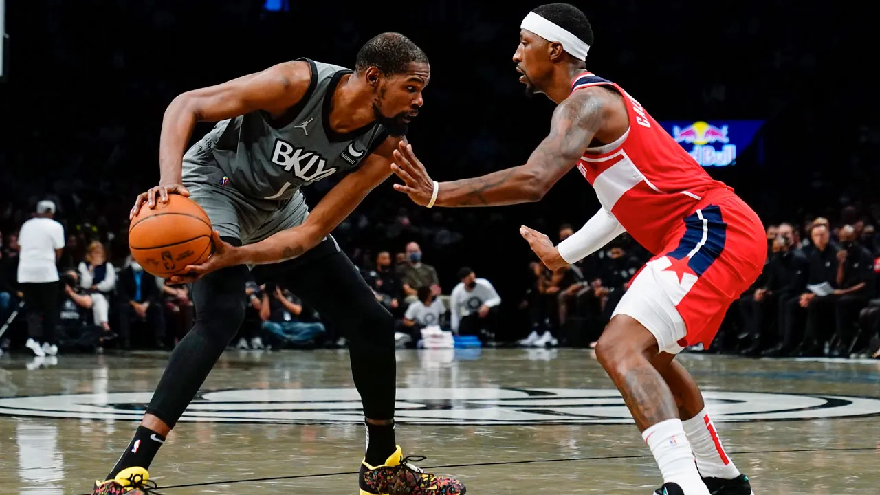 Le génial gaucher contrôle le tempo face à des Wizards qui ne trouvent aucune solution en attaque, et prennent l'eau de toutes parts en défense avec déjà 25 points de retard. Sans trop forcer leur talent et après un magnifique 3-points de Kevin Durant, les Nets sont logiquement devant à la pause (59-42).