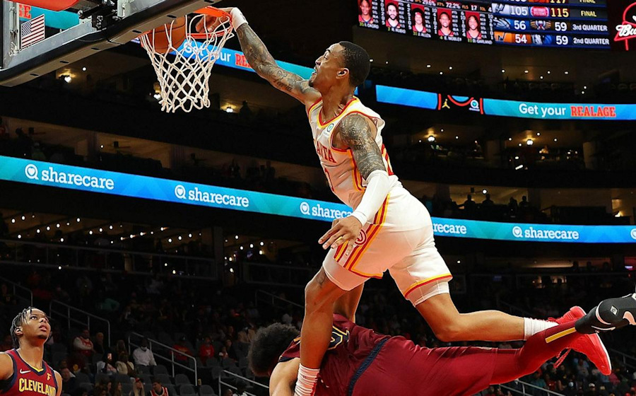 Plus récemment, John Collins a encore décroché le plafond de la State Farm Arena. C’était lors de la pré-saison, et face à un postérizateur patenté, Jarrett Allen, sur un alley-oop dévastateur initié par Sharife Cooper.