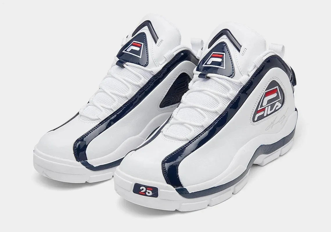 On retrouve aussi le « 25 » en référence aux 25 ans de la Grant Hill 2 sur la sangle présente sur le talon, en rouge et blanc sur les deux modèles. Un logo qu'on retrouve également à l'avant de la chaussure sur la semelle. Les deux versions de la Grant Hill 2 « Anniversary » seront introduites sur le marché à partir du 29 octobre (le 9 novembre sur Fila.com), à 150 dollars.