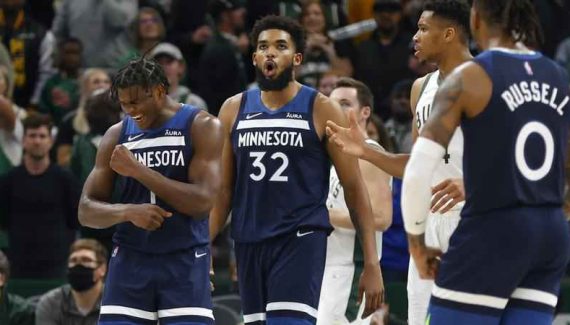 – Un premier quart-temps tonitruant de Minnesota. 44 points marqués (contre 34 encaissés). 68% de réussite aux tirs, dont 60% à 3-points. C’est peu dire que les Wolves ont réussi une entame canon ce soir, dans le sillage de D’Angelo Russell, Anthony Edwards et Karl-Anthony Towns, auteurs en cumulé de 35 points dans les douze premières minutes de la partie. Les Bucks n’étaient pas mauvais, mais ils sont tombés sur un adversaire en état de grâce offensivement, bien lancé par un Russell agressif et en phase avec son tir, avant qu’Edwards puis Towns ne prennent le relais, tout en propreté et sans rien forcer non plus.