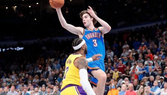 19 ans et 17 jours. Voilà l’âge auquel Josh Giddey a atteint, cette nuit dans la victoire face aux Lakers, la barre symbolique des 10 passes décisives dans un match. Le rookie du Thunder devient le plus jeune joueur de l’histoire en la matière derrière un certain LeBron James, qui avait distribué 10 caviars dès ses 18 ans (et 355 jours).