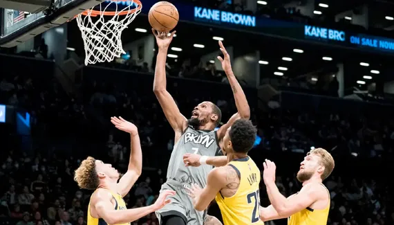 TJ McConnell a multiplié les actions limites cette nuit et il a bien failli faire expulser Kevin Durant dans le troisième quart-temps. Après s'être fait arracher le bras en contre-attaque, l'ailier des Nets a ainsi balancé le ballon vers le panneau… qu'il a complètement raté, la balle allant finir sa course dans les tribunes.