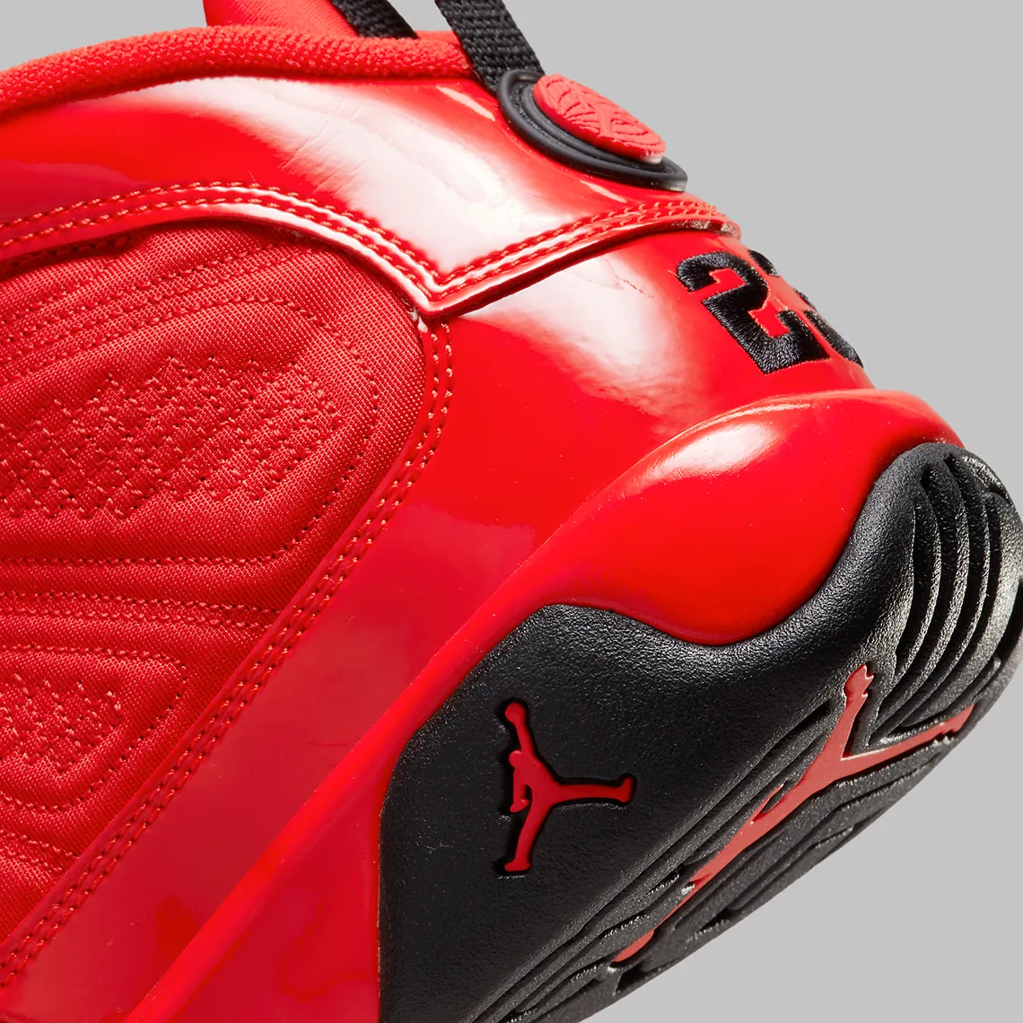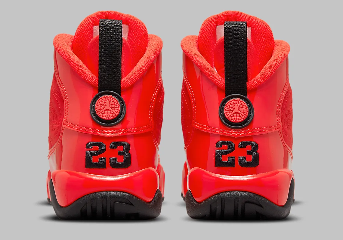 Une annonce qui a été complétée par des images officielles à couper le souffle, sur lequel on peut admirer ce modèle « rouge piment » avec un rouge vif pour recouvrir les parties en cuir verni et la semelle intermédiaire. Seuls les œillets, la semelle extérieure, la tirette et le talon ressortent en noir, avec le numéro 23 bien visible sur le talon.