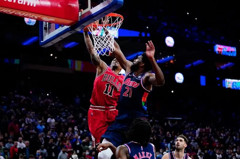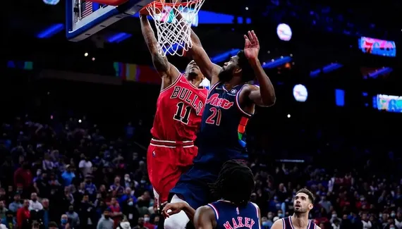 DeMar DeRozan était bien parti pour aller mettre Joel Embiid sur un poster. Mais le Camerounais a fait opposition en contrant l'arrière des Bulls. Les arbitres ont d'abord sifflé faute avant de revenir sur leur décision après un “challenge” gagnant pour Doc Rivers et les 76ers. Un revirement décisif car ce duel en haute attitude s'est joué à dix secondes de la fin avec seulement deux possessions d'écart.