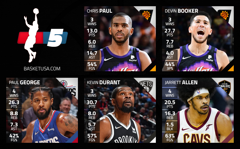 Le “backcourt” est ainsi celui des Suns. Il faut dire que Devin Booker a retrouvé son adresse et ça fait mal, alors que Chris Paul est passé à la 3e place des meilleurs passeurs de l’histoire cette semaine. Le meneur semble pourtant gêné par son poignet gauche, opéré cet été, et il s’est surtout mis au service de son coéquipier. Ça donne une moyenne de 14.7 passes décisives par match qui emporte la décision face à Jordan Poole, Kyle Lowry, Seth Curry ou autres Bradley Beal, Cole Anthony et James Harden qui ont aussi candidaté.