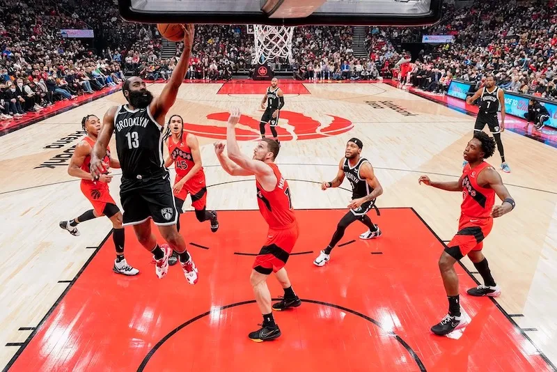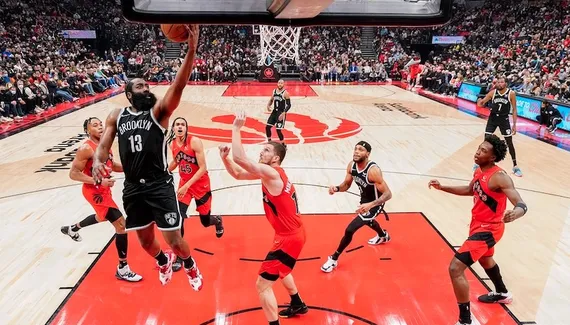 Svi Mykhailiuk avait un choix à faire. Sortir sur James Harden ou couvrir Blake Griffin dans le corner ? Placé dans la deuxième ligne de la zone de Nick Nurse, l'Ukrainien a tenté l'entre-deux et le barbu s'est retrouvé tout seul. Faire l'impasse sur lui, alors qu'il vient de manquer ses sept premières tentatives, peut s'entendre.