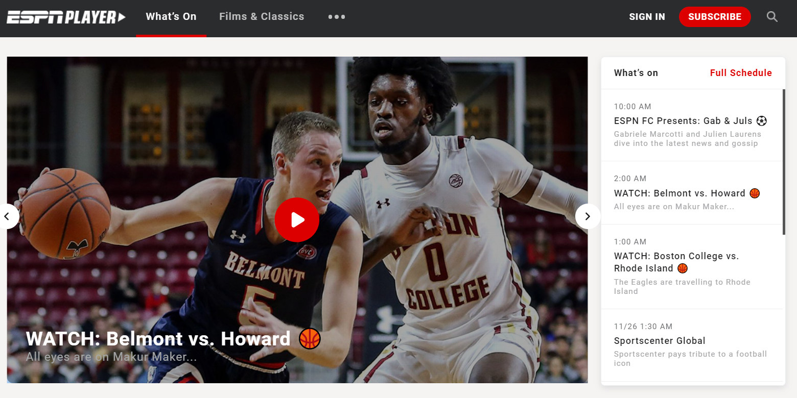 – ESPN Player diffusera cette saison plus de 2000 matchs de saison régulière et le tournoi de la March Madness.