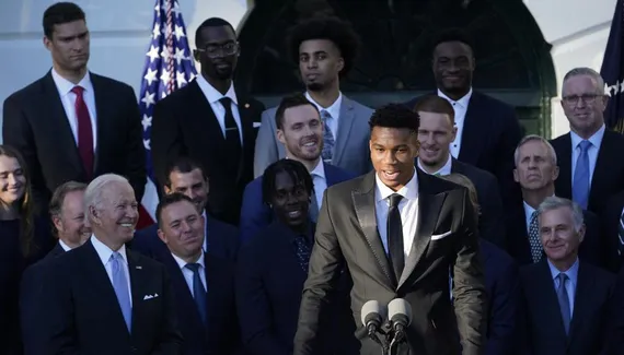 Ensuite, les années Donald Trump, qui n'appréciait guère les basketteurs (et réciproquement…) ont privé les champions NBA de ce moment. Joe Biden a donc renoué avec la tradition en invitant les Bucks, sacrés l'été dernier. Seul manquait à l'appel Khris Middleton, placé à l'isolement car positif au Covid-19.