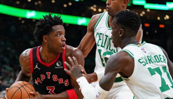 Pour ce deuxième acte, les Celtics, toujours privés de Jaylen Brown, ont ainsi dominé leur sujet avec un 12-4 passé dès la fin du premier quart-temps, conclu par un 3-points et un lay-up de Dennis Schroder (33-23). Malgré l’activité de Scottie Barnes, les locaux ont gardé le cap grâce à de bons passages de Marcus Smart et Robert Williams III, le tandem se retrouvant pour porter la marquer à 50-37 sur un alley-oop en haute altitude.
