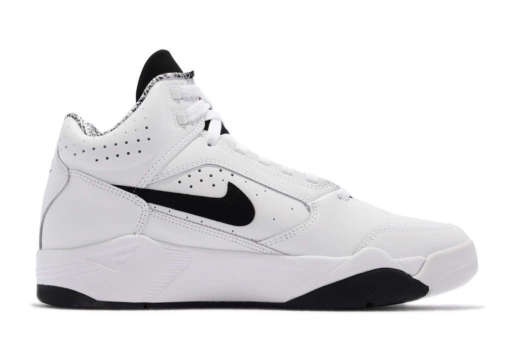 Nike ne manque pas une occasion de célébrer ses modèles historiques dont la Nike Air Flight Lite Mid fait partie. Sortie il y a 30 ans et popularisée par des joueurs iconiques comme Chris Mullin ou Scottie Pippen, la version actualisée est habillée d’un coloris blanc et noir simple, épurée. Le cuir blanc sur l’empeigne est contrasté par un « Swoosh » apparaissant en noir tandis que la languette est en néoprène.