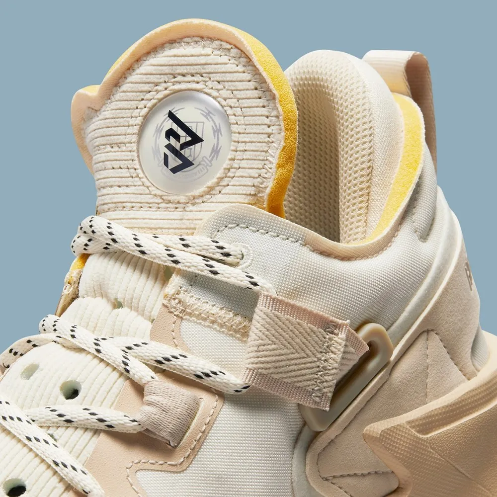 Pour respecter le thème de cette dernière mouture, ce modèle beige, marron et jaune se veut avant-gardiste, avec des assemblages de matériaux audacieux sur la tige comme sur la languette, au niveau du revêtement de la semelle extérieure ou encore sur la présence de deux dernières sangles ajustables pour les lacets.