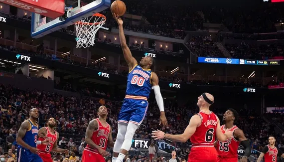 Le rookie, qui a disposé de son plus gros temps de jeu (7 points et 6 rebonds en 19 minutes) cette nuit face aux Nets, impressionne avec ce genre d'actions au-dessus du cercle. Il s'était déjà démarqué y a quelques jours contre les Bulls. Steve Kerr avait notamment apprécié son travail défensif sur DeMar DeRozan.