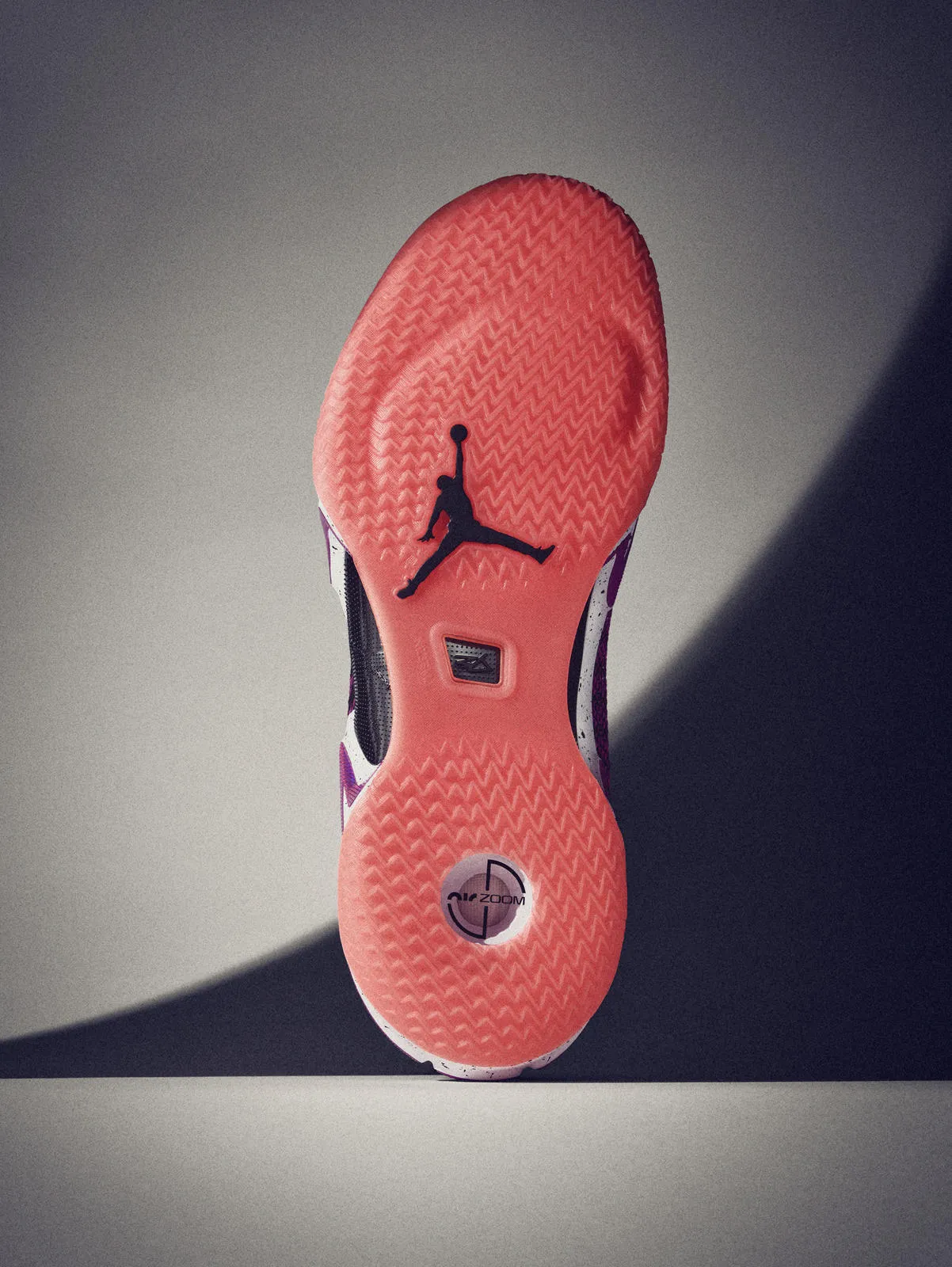 Le dispositif technique novateur présent au cœur de la semelle se fait évidemment ressentir dans l'amorti. La Air Jordan 36 est en effet doté de la plus grande couverture Zoom Air que Jordan Brand ait intégrée dans une chaussure signature, avec une unité Zoom Air Strobel sur toute la longueur de la chaussure cousue directement sur la tige, placée au-dessus d’une autre unité Zoom Air à l’avant du pied qui offre également plus de réactivité.
