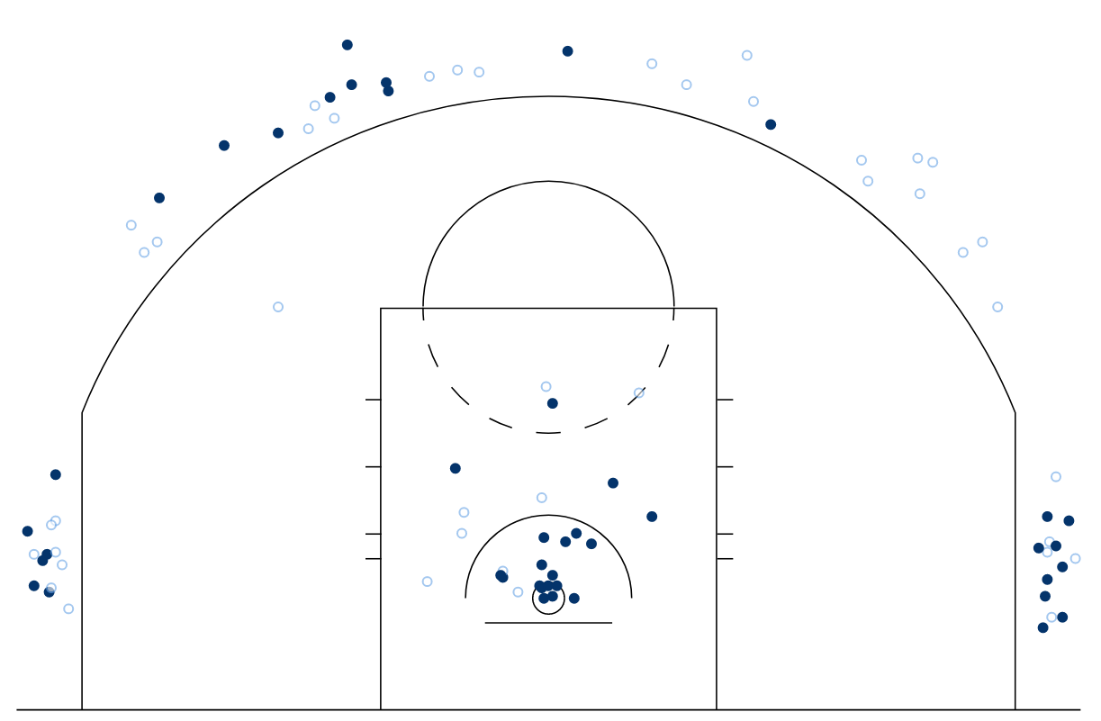 Et après une campagne sophomore compliquée, Grant Williams ressemble de plus en plus à son illustre aîné ces derniers temps, notamment par rapport à cette incroyable adresse dans les coins. Car s’il tourne à un très bon 43.1% de réussite à 3-points depuis cette nuit, il est carrément à 56% (15/27) dans les deux “corners” du terrain !