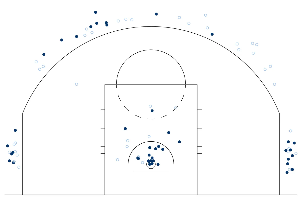 Et après une campagne sophomore compliquée, Grant Williams ressemble de plus en plus à son illustre aîné ces derniers temps, notamment par rapport à cette incroyable adresse dans les coins. Car s'il tourne à un très bon 43.1% de réussite à 3-points depuis cette nuit, il est carrément à 56% (15/27) dans les deux “corners” du terrain !