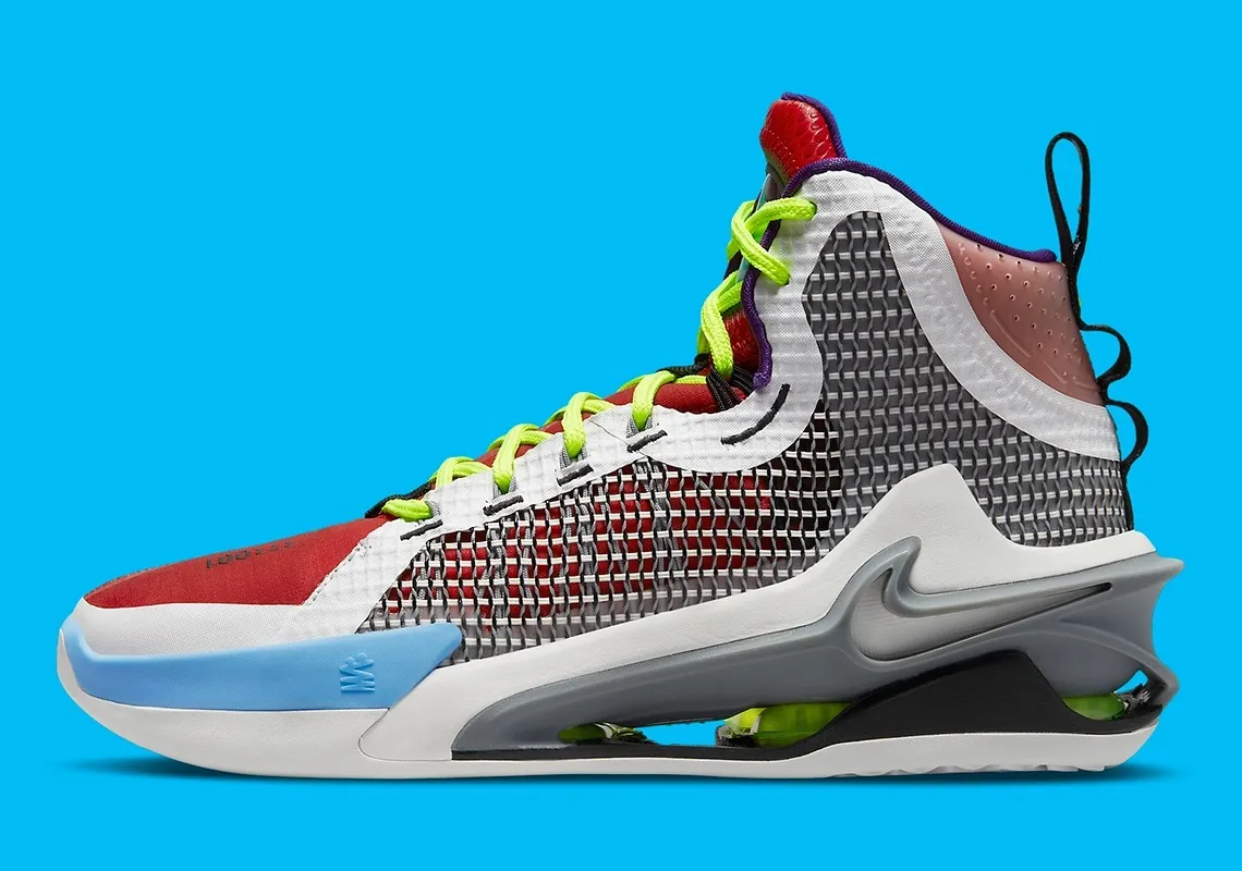 La série Nike « Air Zoom Greater Than » avait envoyé du lourd en avril dernier en étoffant sa collection de trois nouvelles versions, la Cut, la Run, et la Jump, présenté ici avec un premier coloris audacieux mêlant rouge, violet, bleu ciel et vert clair pour compléter un ensemble blanc et gris.