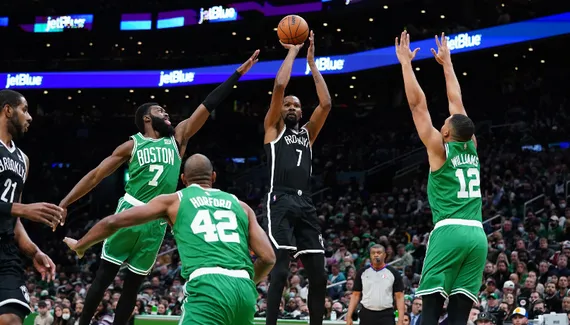 C’était un choc de la conférence Est… qui a très vite tourné en faveur des Nets. Touché depuis quelques semaines à l’épaule, Kevin Durant a quand même envie de briller au TD Garden. Il domine offensivement comme il a l’habitude de le faire et permet aux siens de maîtriser ce premier acte. Boston est déjà dans le dur.
