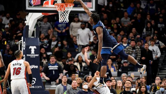 Il s’en est fallu de peu pour que Gabe Vincent soit mis sur la liste des victimes d’Anthony Edwards. Postérizé en beauté par la star montante des Wolves en début de quatrième quart-temps, le meneur floridien s’en est tiré en provoquant de justesse une faute offensive qui a fini par calmer la foule, encore choquée par ce qu’elle venait de voir. Sans ça, c’était à coup sûr l’un des posters de l’année. Jugez plutôt !