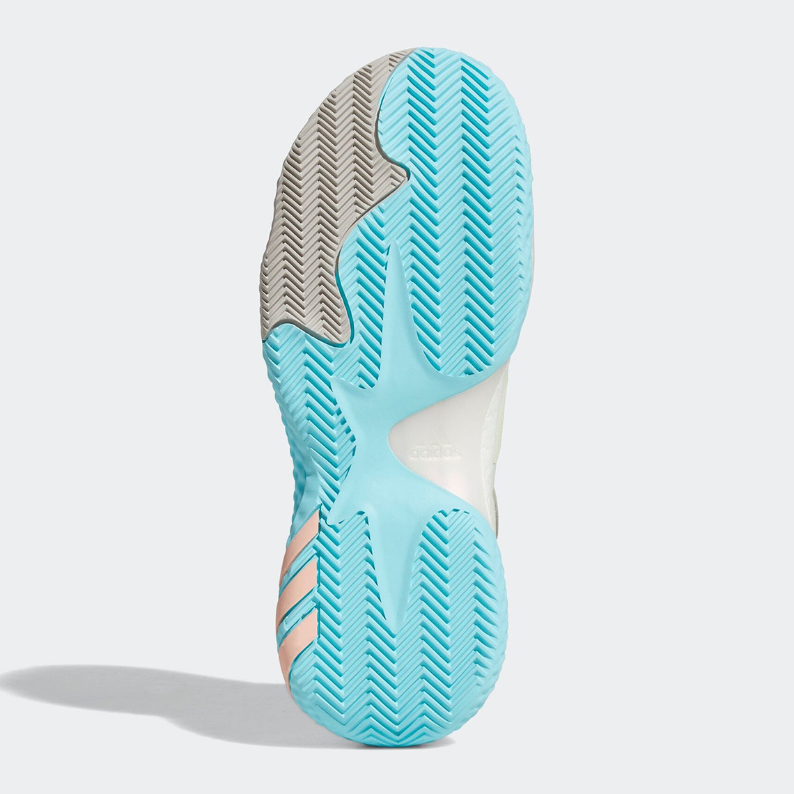 La tige est composée de superpositions de mesh et de cuir. A noter également le rembourrage inédit à l’intérieur du col, sous forme de boules, quelques inscriptions sur la languette, un “Vol. VI” et “XIII” subtilement glissés. et la présence d’un amorti Boost au niveau de la semelle.