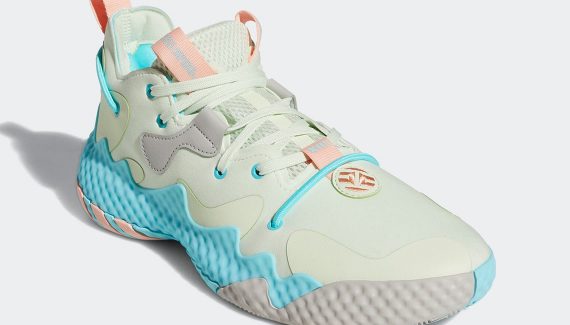Voici les premières images de la Harden Vol. 6 qui se prépare pour 2022. Dans la lignée de la version précédente, on retrouve un modèle Mid épuré, sur lequel le logo adidas est également très discret (sur la languette au talon et la semelle).