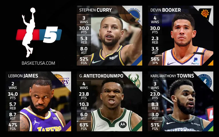 Pas trop de difficultés à choisir le backcourt cette semaine puisque les deux meilleures équipes de ce début de saison, les Warriors et les Suns, sont portées par d'excellents Stephen Curry et Devin Booker.