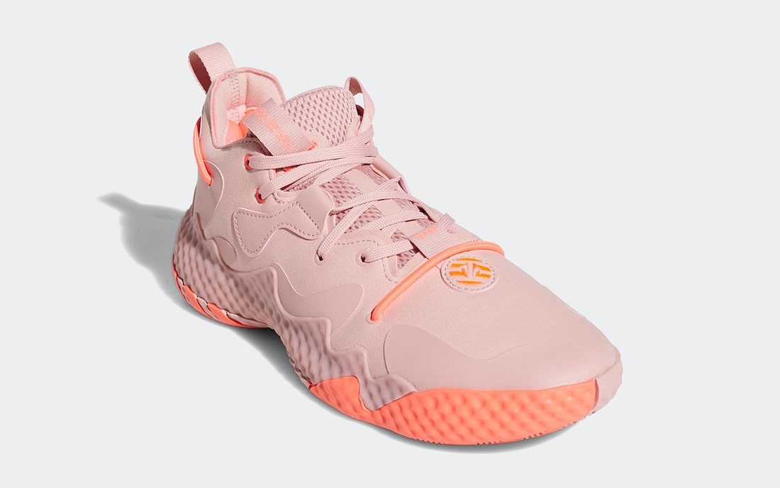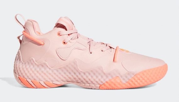 La marque aux trois bandes s’apprête à mettre le paquet sur la Harden Vol. 6, déjà dévoilée en deux coloris et qui va rapidement être accompagnée par cette version « saumon », alliant du rose pâle, principalement sur la tige en mesh et en cuir, et des marques d’orange au niveau de la semelle, sur laquelle ressort notamment le logo adidas. Le rembourrage du col intérieur apparaît en rouge.