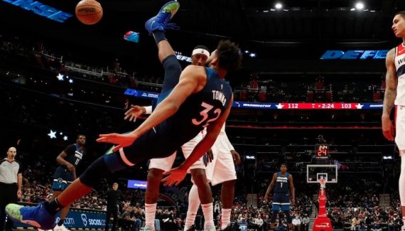 « Je me sens mieux que je ne l’aurais imaginé. » Karl-Anthony Towns n'est sans doute pas le seul à avoir pensé à une grave blessure en voyant sa chute. Sur le parquet des Wizards cette nuit, à la toute fin du match, l'intérieur des Wolves est parti en « drive » ligne de fond pour finir en dunk, à deux mains, devant Kentavious Caldwell-Pope.