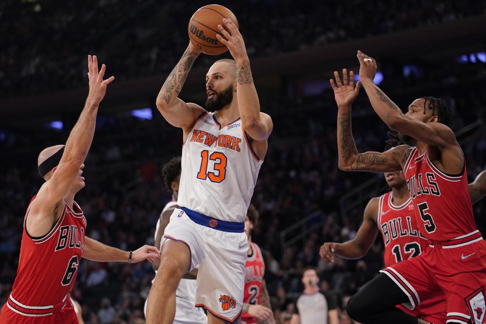 Après la courte défaite contre les Nets, et les critiques lancées aux arbitres, la tension n’était pas redescendue pour Julius Randle et les Knicks. Alors que le buzzer de la première mi-temps contre Chicago sonne, l’intérieur de New York entame une discussion animée avec Evan Fournier.