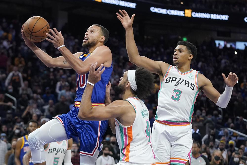 Une action résume parfaitement le début de match : Stephen Curry qui part en transition avec deux Spurs derrière lui et qui rate un panier tout cuit. Lonnie Walker IV prend le rebond et fait un coast-to-coast alors que les Warriors lui déroulent le tapis rouge vers le cercle.