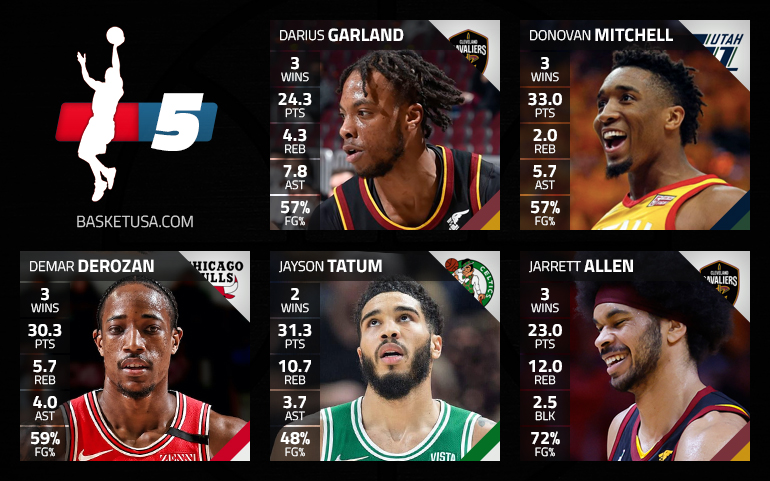 Sur les lignes arrières, on retrouve ainsi un Donovan Mitchell qui a retrouvé de l’adresse depuis quelques matchs, alors que c’est un Darius Garland de plus en plus libéré qui se fait une place à ses côtés, malgré la bonne semaine de Dejounte Murray, Zach LaVine ou encore de Desmond Bane.