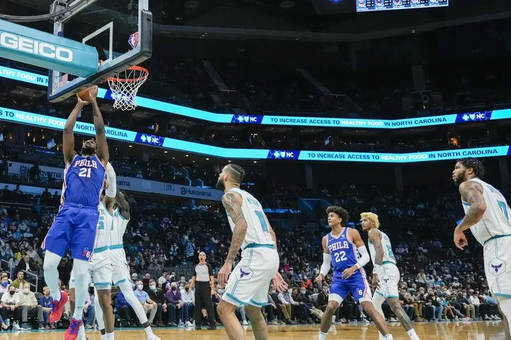 Déjà que les Hornets manquent de taille et de poids en temps normal, ils évoluent aussi sans leur unique pivot, Mason Plumlee, placé à l'isolement. Résultat : Joel Embiid était comme un adulte au milieu d'enfants avec des rebonds qui retombaient souvent dans ses mains, comme sur cette claquette en prolongation ou sur le rebond de la victoire, ou encore ses nombreux paniers près du cercle. La bonne nouvelle, pour les Sixers, c'est qu'il a arrêté de se prendre pour Stephen Curry, et qu'il préfère sanctionner à 5-6 mètres.