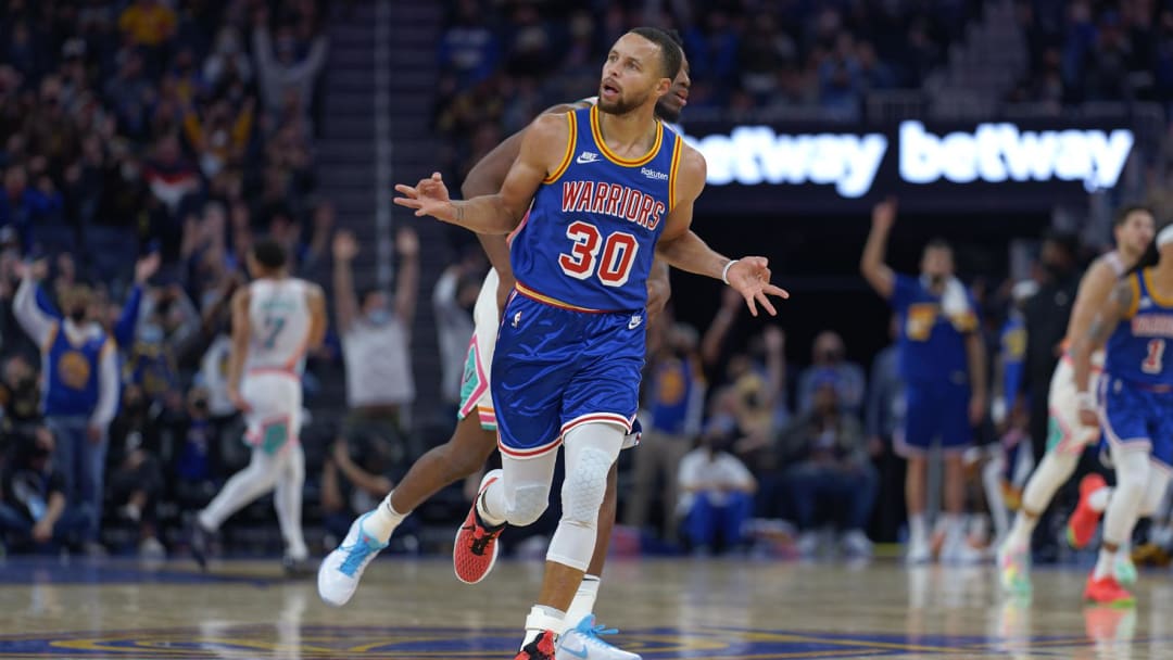Une journaliste enchaîne en lui rapportant les propos de Steve Kerr qui prédit que son meneur va beaucoup shooter lors du prochain match face à Portland, et que ce n’est pas impossible que Stephen Curry plante 16 3-points face aux Blazers… Ce qui lui permettrait de battre deux records mythiques dans la même soirée.
