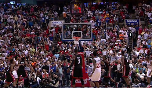 Il a D-Wade devant lui. Un Wade qui en est à 5 contres. Pas de problème, il lui colle un “face” à 3-points. Il reste 8 secondes. Philly vient de coller un 8-0 au Heat. Mais Miami a la balle de match.